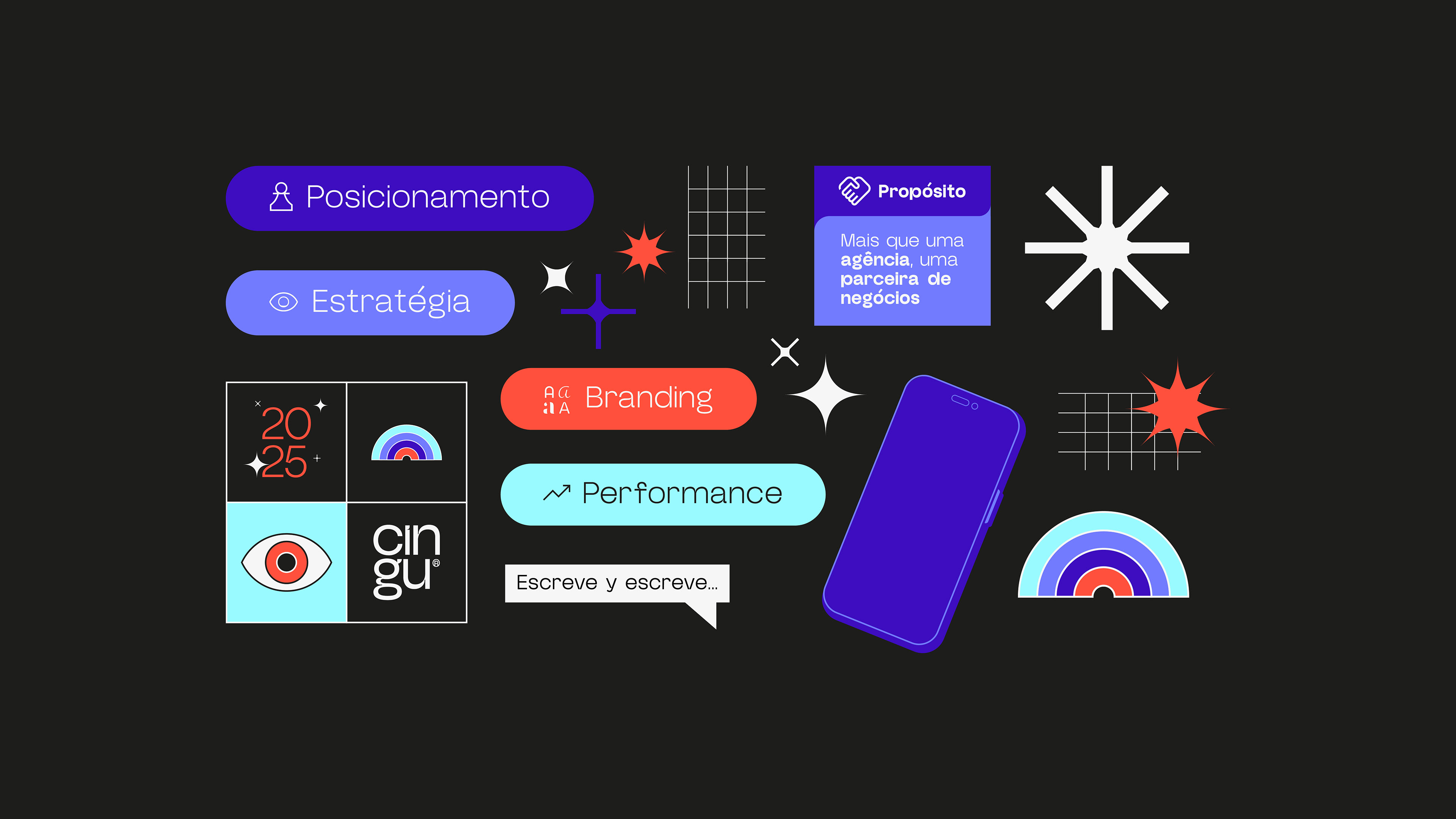 Com o aniversário de cinco anos da agência, um novo momento, com novo posicionamento, tom de voz e identidade visual se fez necessário.